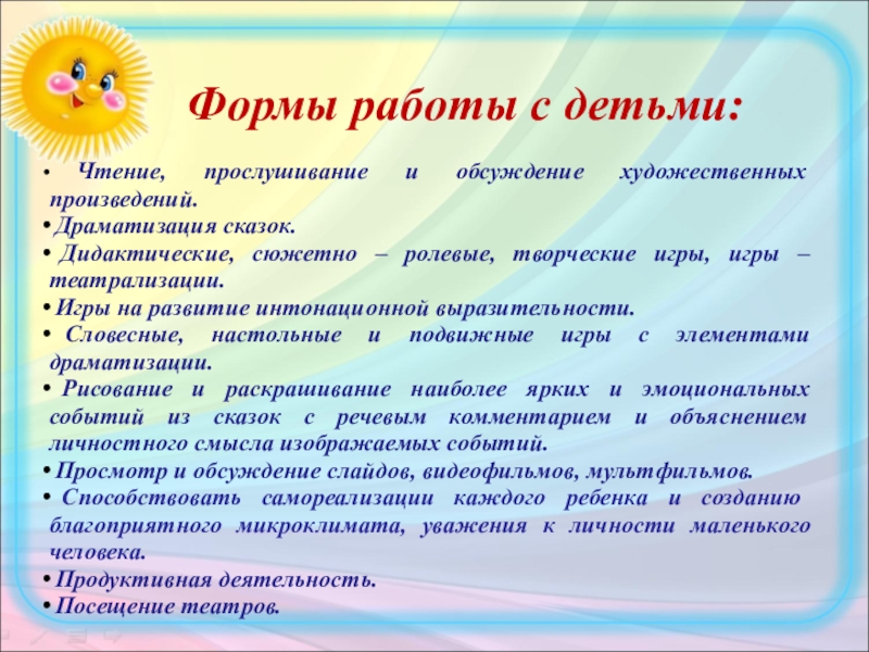 Формы работы с детьми: