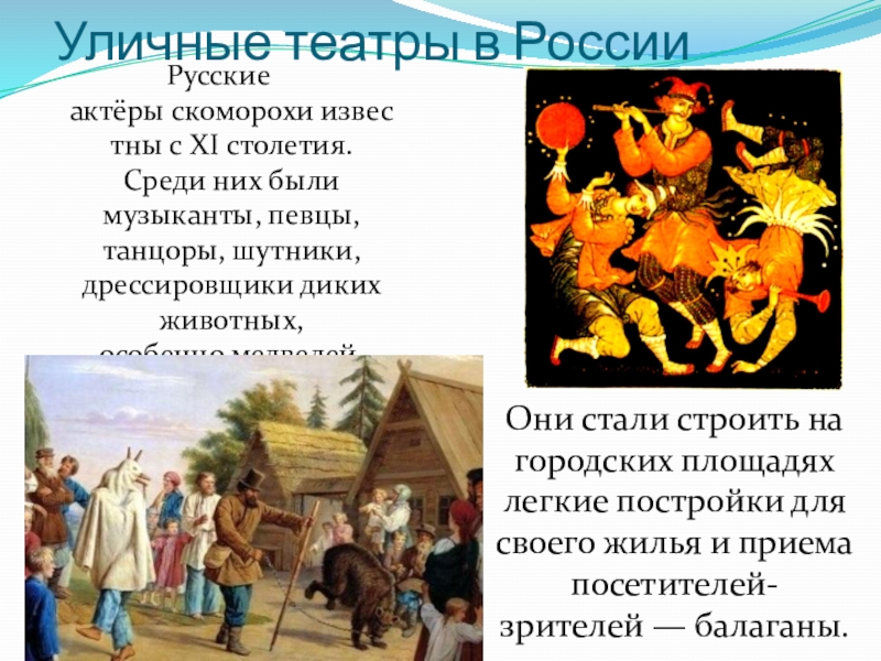Они стали строить на городских площадях легкие постройки для своего жилья и приема посетителей-зрителей — балаганы.