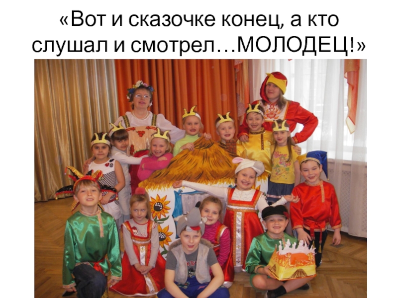 Слайд 11«Вот и сказочке конец, а кто слушал и смотрел…МОЛОДЕЦ!»