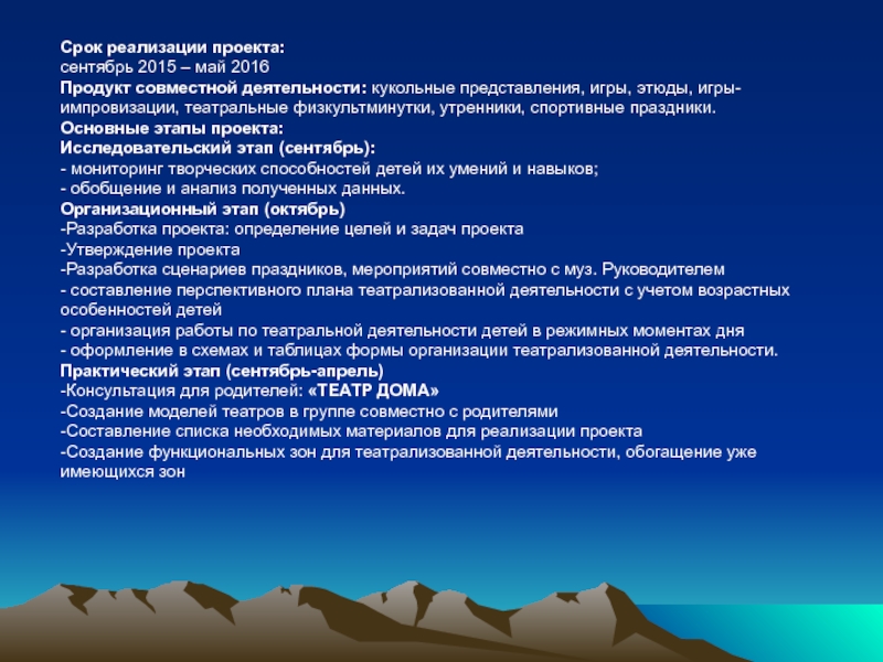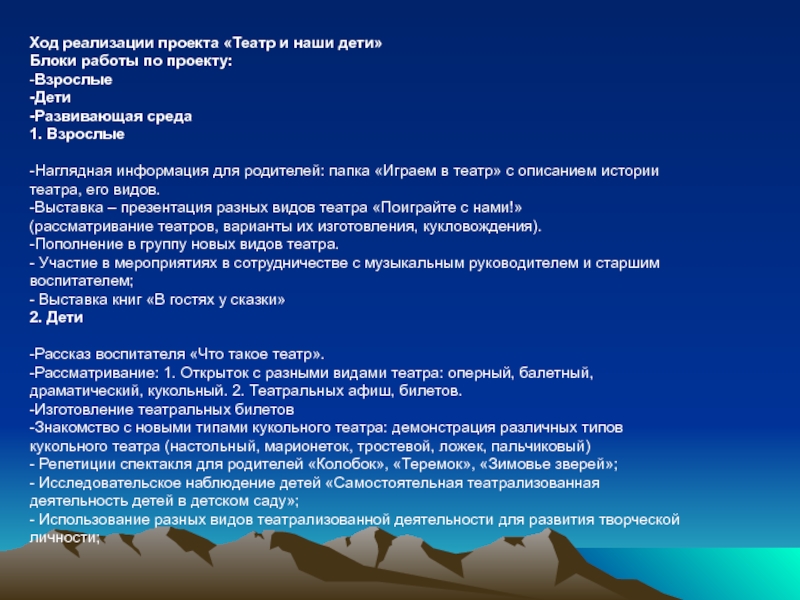Слайд 6Ход реализации проекта «Театр и наши дети»