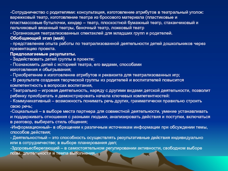Слайд 5-Сотрудничество с родителями: консультация, изготовление атрибутов в театральный уголок: варежковый театр,