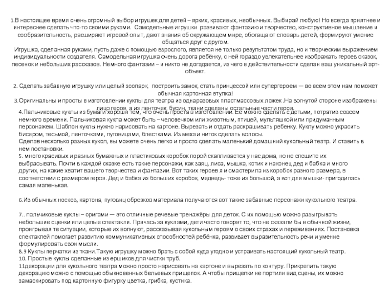 7.. пальчиковые куклы – оригами — это отличные речевые тренажёры для деток. С их помощью можно разыгрывать небольшие сценки или целые спектакли. Прячась за куклами, дети часто говорят то, что не сказали бы в обычной жизни, проигрывая те ситуации, которые их волнуют, рассказывая кукольным героям о своих страхах и переживаниях. Постановка спектаклей помогает развитию коммуникативных способностей ребёнка, развивает выразительность речи и умение формулировать свои мысли.