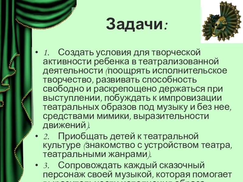 Получение детьми знаний о разновидностях театров (кукольный, драматический, оперный).