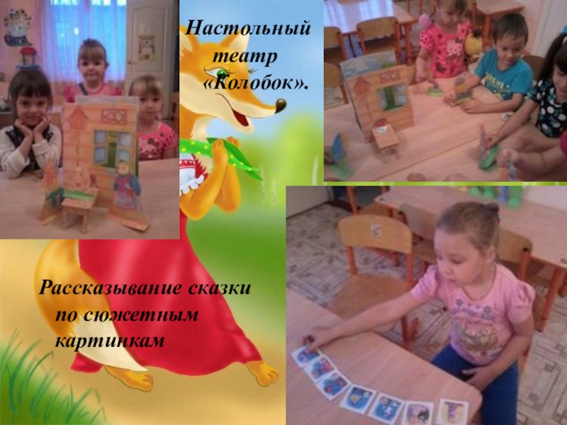 Пересказ сказки по опорным картинкам, с помощью настольного кукольного театра, с использованием игры – конструктора «Колобок» .