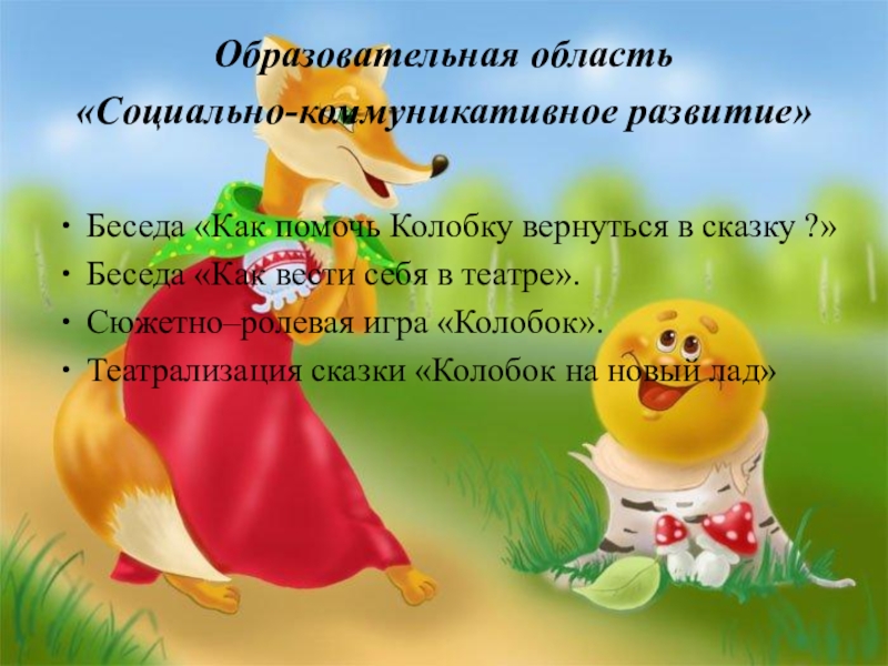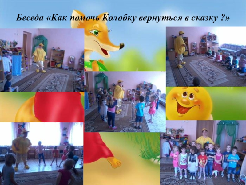 Слайд 26Беседа «Как помочь Колобку вернуться в сказку ?»