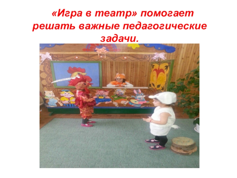 Слайд 3 «Игра в театр» помогает решать важные педагогические задачи.