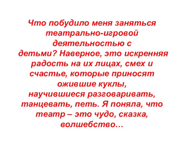 Слайд 2Что побудило меня заняться театрально-игровой деятельностью с