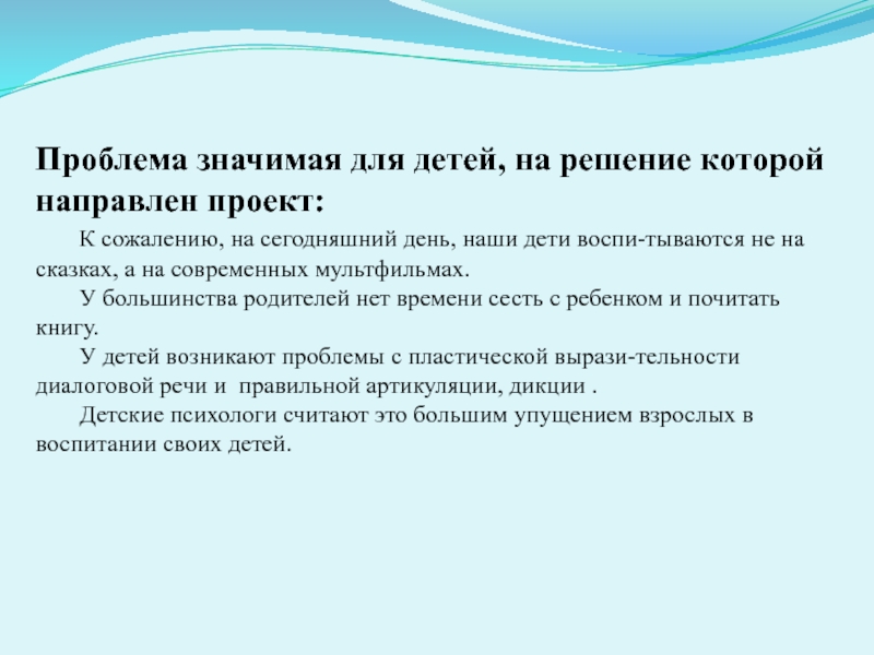 Слайд 5Проблема значимая для детей, на решение которой направлен проект: