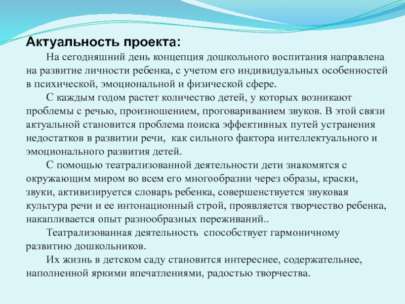 На сегодняшний день концепция дошкольного воспитания направлена на развитие личности