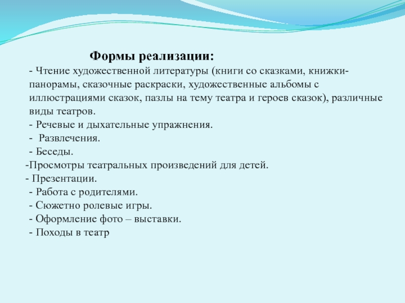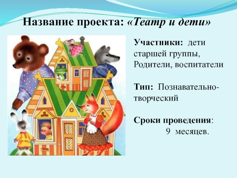 и дети» (чтение художественной литературы и рассматривание иллюстраций к русским народным сказкам), просмотр слайдов об театрах и театрального костюма
