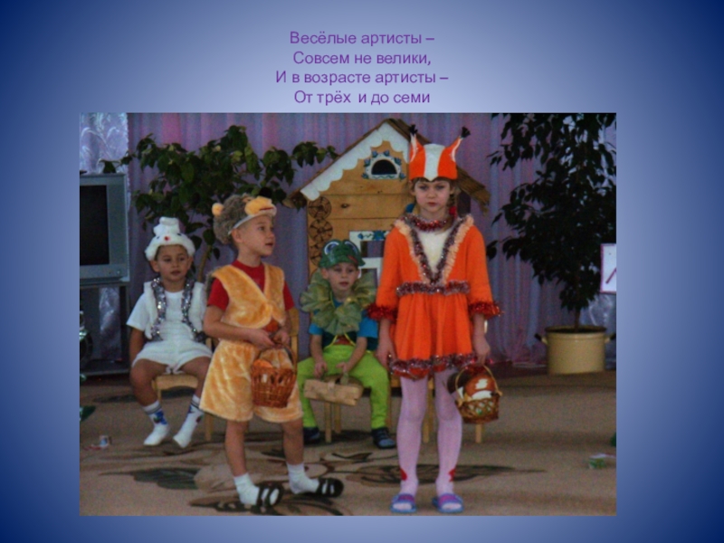 Цель : способствовать развитию образности и выразительности речи, а также творческих способностей детей средствами театрализованной деятельности.