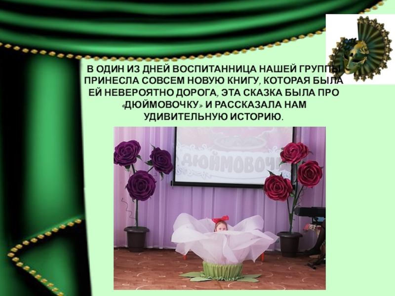 Презентация, доклад на тему Театрализованная деятельность в детском саду Дюймовочка