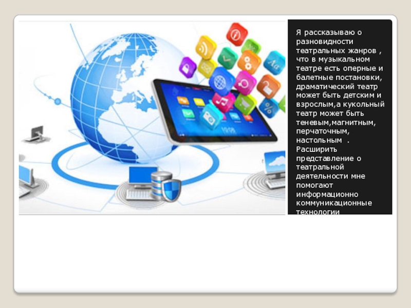 Слайд 7Я рассказываю о разновидности театральных жанров ,что в музыкальном театре есть