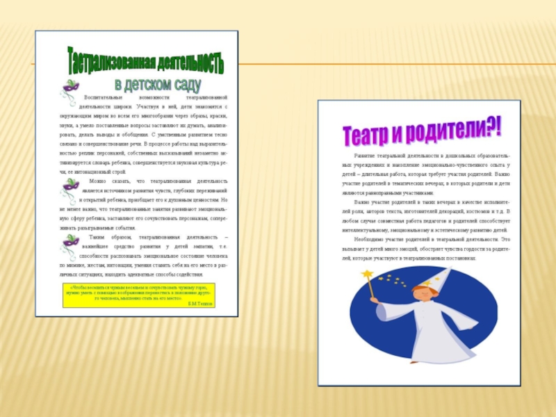 Слайд 2Театр – это средство эмоционально-эстетического воспитания детей в детском саду. Театрализованная