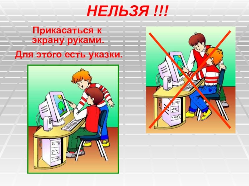 НЕЛЬЗЯ !!!   Прикасаться к экрану руками. Для этого есть указки.