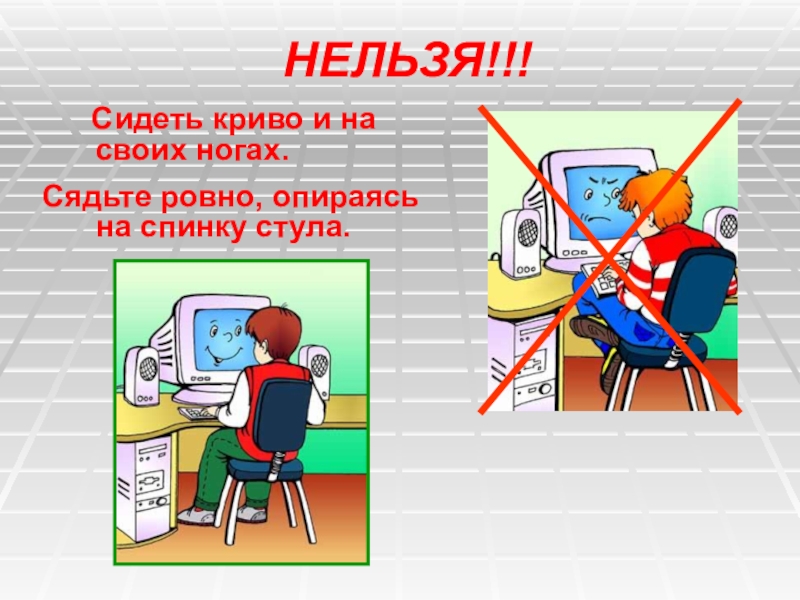 НЕЛЬЗЯ!!!   Близко приближаться к монитору.Придерживайтесь безопасного расстояния.