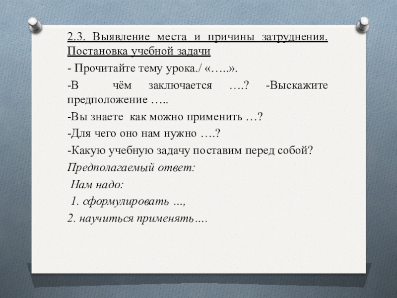 Слайд 112.3. Выявление места и причины затруднения. Постановка учебной задачи