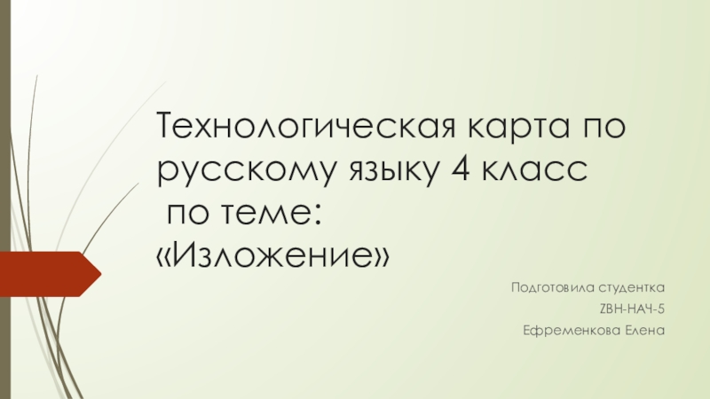 Технологическая карта по русскому языку 4 класс  по теме: «Изложение»Подготовила студенткаZВН-НАЧ-5Ефременкова Елена