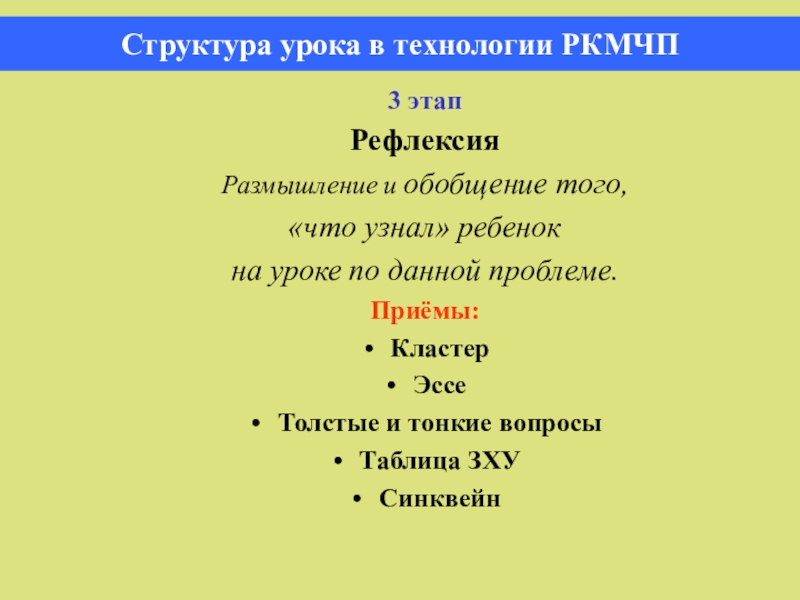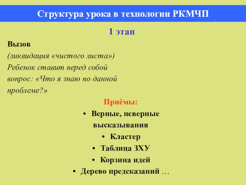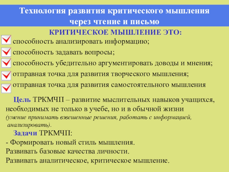 Цель ТРКМЧП – развитие мыслительных навыков учащихся,