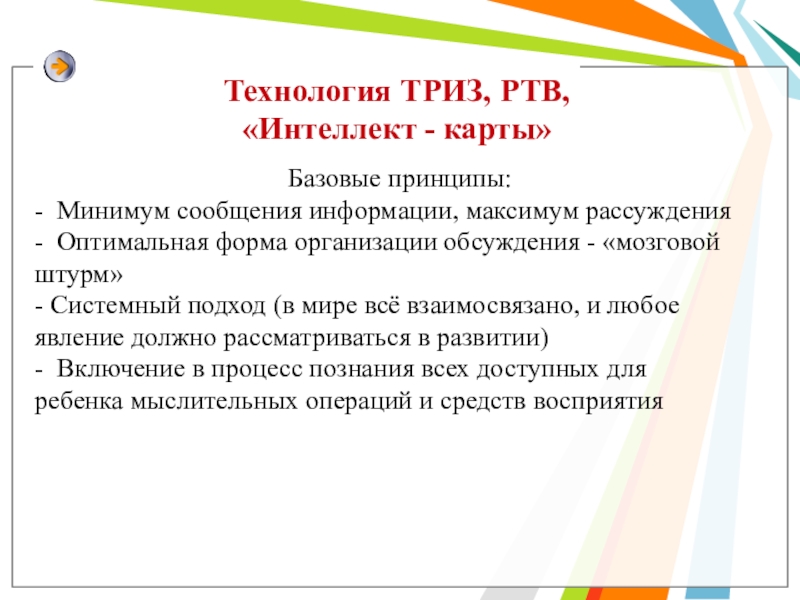 4. Технология развития творческого воображения (РТВ), теория развития изобретательских задач (ТРИЗ), «Интеллект - карты»
