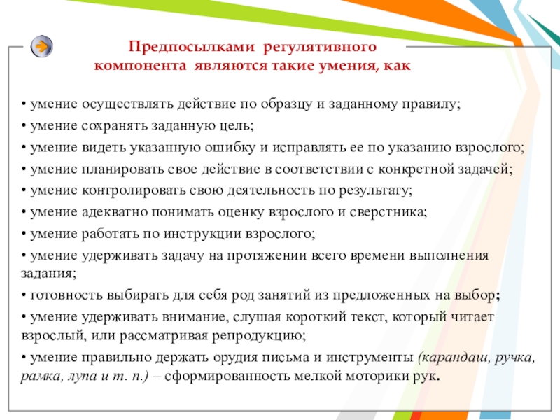 Слайд 45Предпосылками регулятивного компонента являются такие умения, как