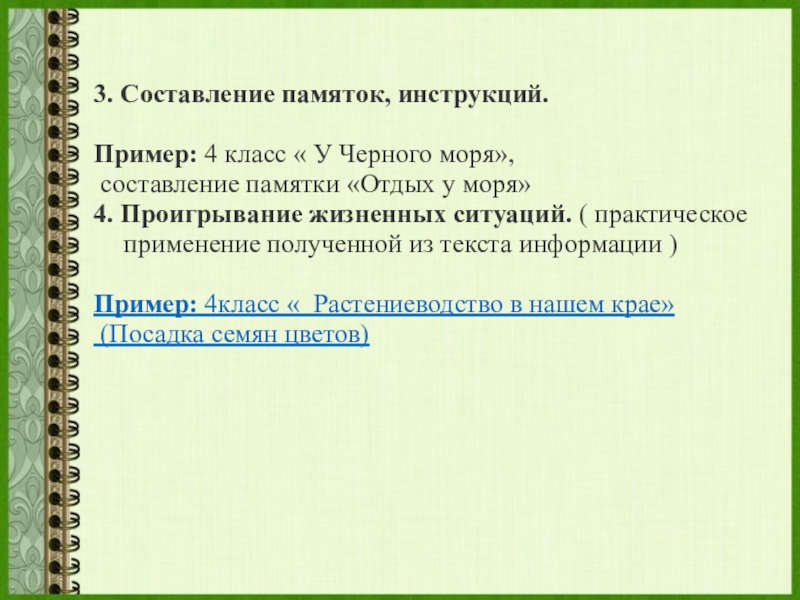 4. Проигрывание жизненных ситуаций. ( практическое применение полученной из текста информации )