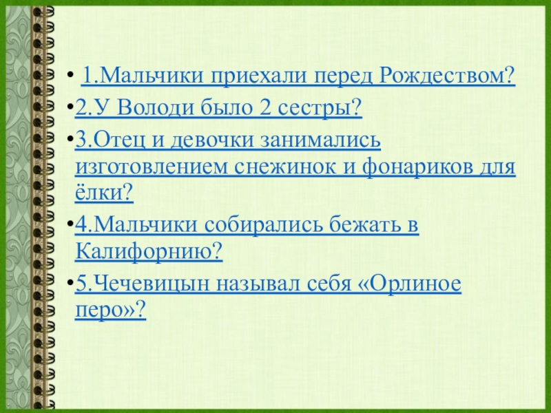 Слайд 5 1.Мальчики приехали перед Рождеством?