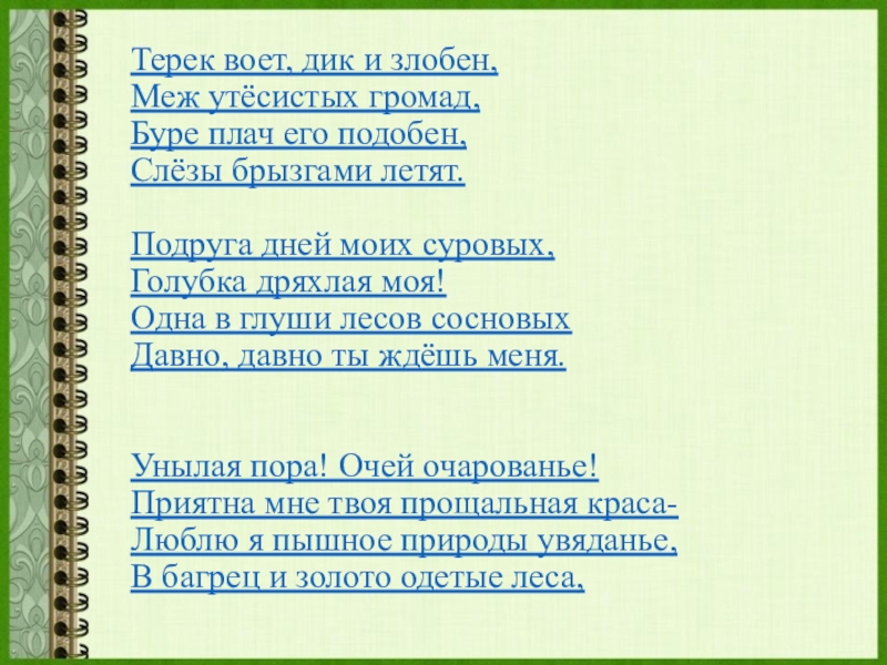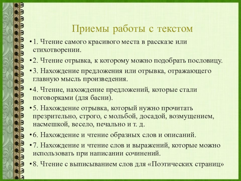 8. Чтение с выписыванием слов для «Поэтических страниц»