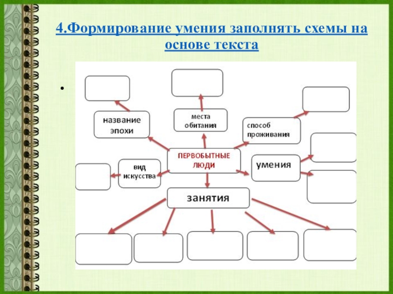 Слайд 204.Формирование умения заполнять схемы на основе текста
