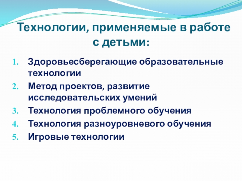 Слайд 3 Технологии, применяемые в работе с детьми: