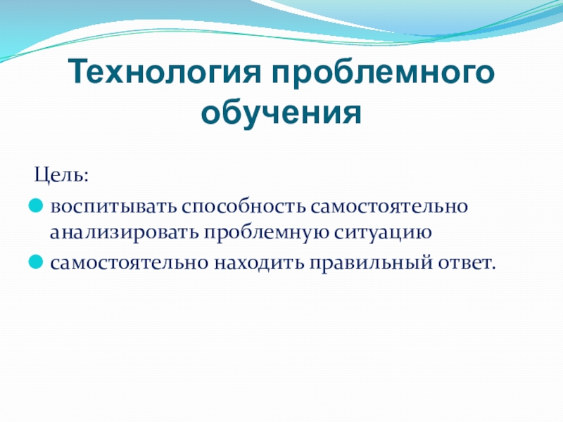 Технология проблемного обучения Цель:воспитывать способность самостоятельно анализировать проблемную ситуацию самостоятельно находить правильный ответ.