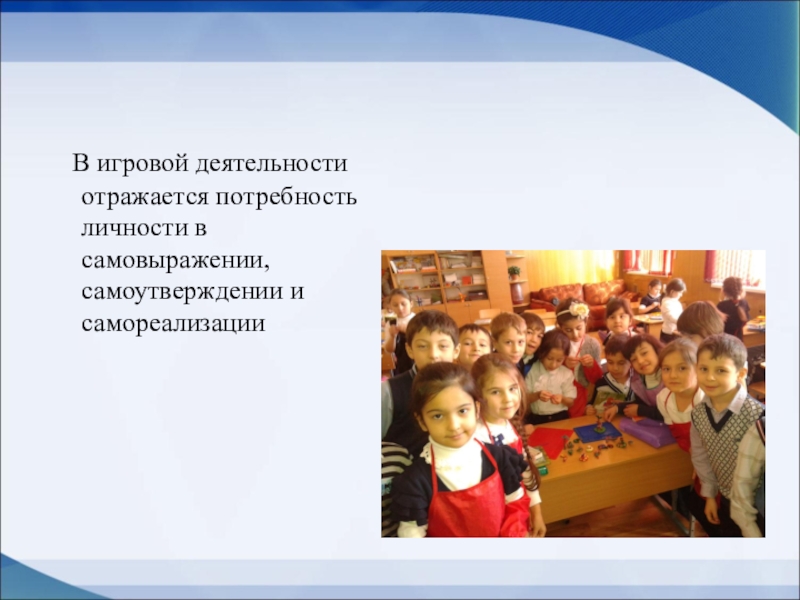 В игровой деятельности отражается потребность личности в самовыражении, самоутверждении и самореализации
