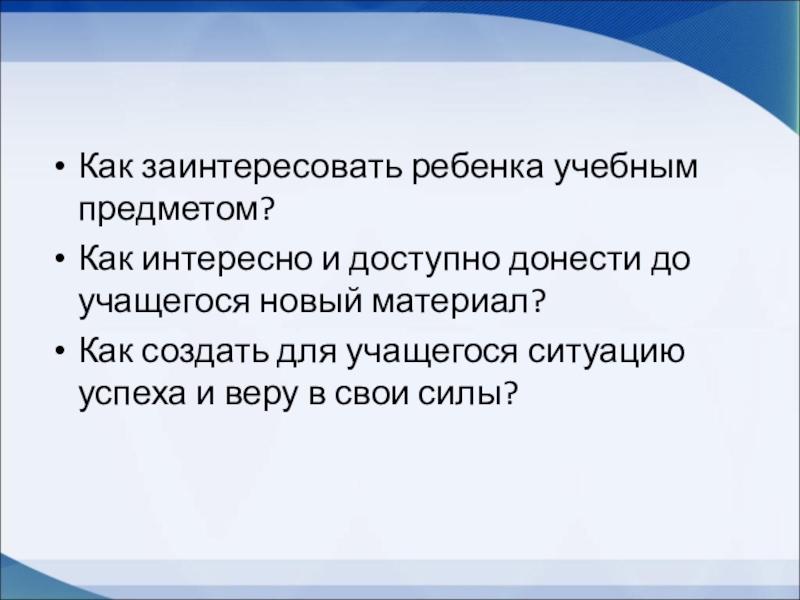 Как заинтересовать ребенка учебным предметом? Как интересно и доступно донести до учащегося новый материал? Как создать для учащегося ситуацию успеха и веру в свои силы?