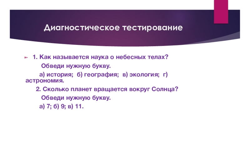 Слайд 9 Диагностическое тестирование