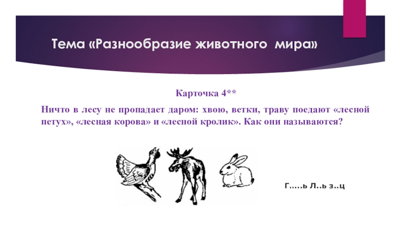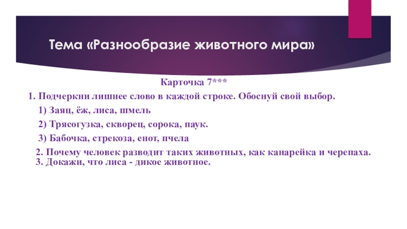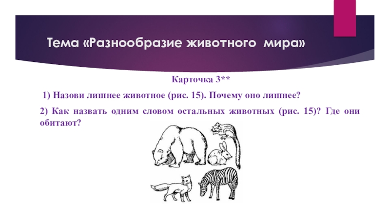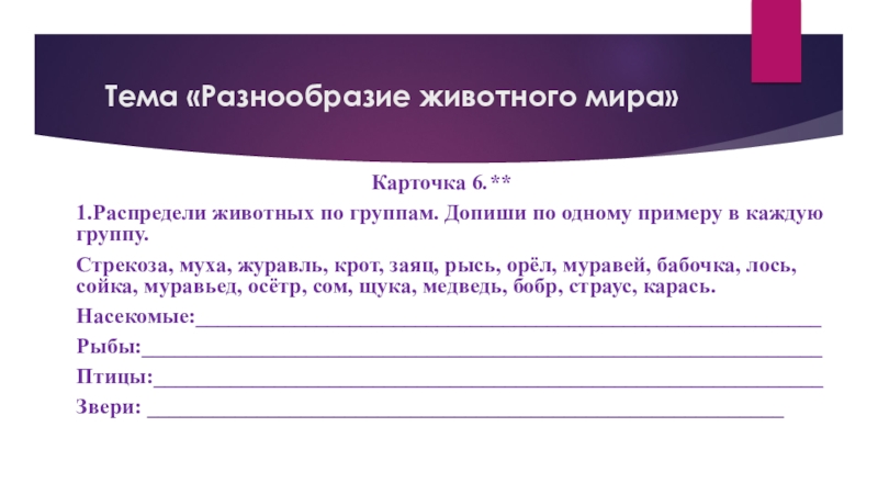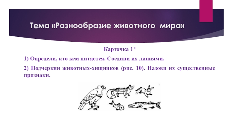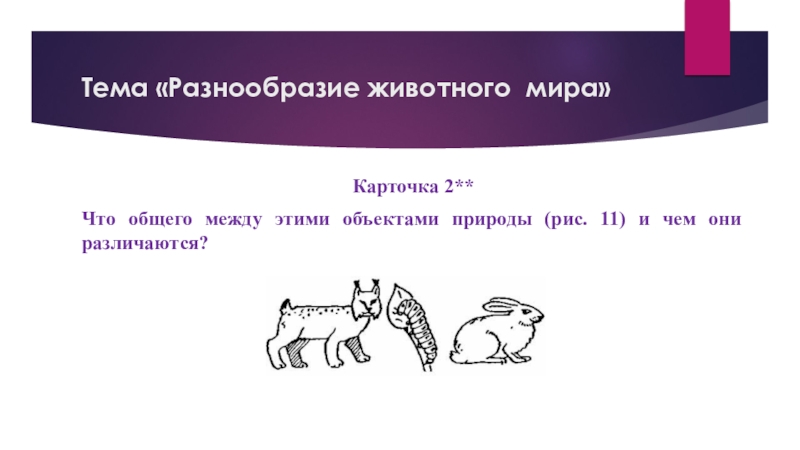 Слайд 48Тема «Разнообразие животного мира»