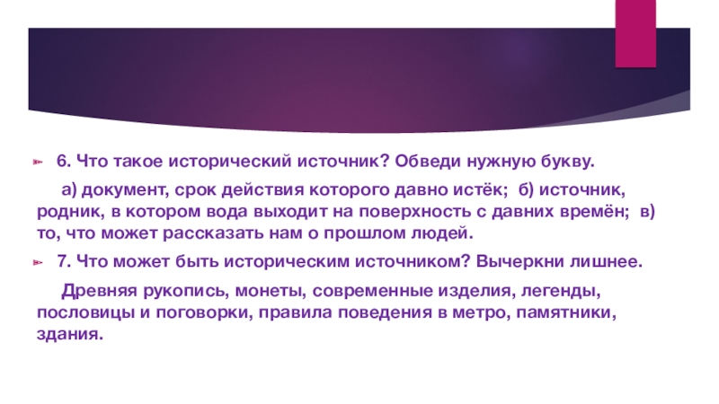 Слайд 126. Что такое исторический источник? Обведи нужную букву.