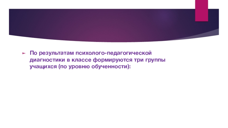 Слайд 20По результатам психолого-педагогической диагностики в классе формируются три группы учащихся (по