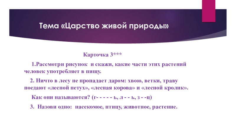 Тема «Царство живой природы»