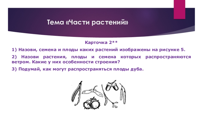 Назови, семена и плоды каких растений изображены на рисунке.