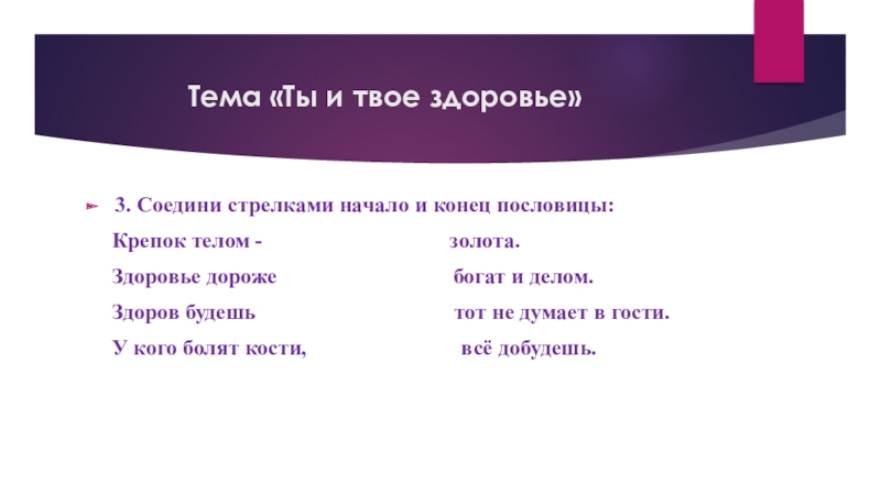 Запиши одну пословицу о здоровье.