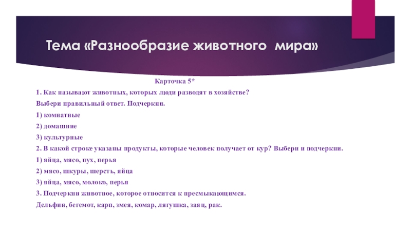 Слайд 49 Тема «Разнообразие животного мира»