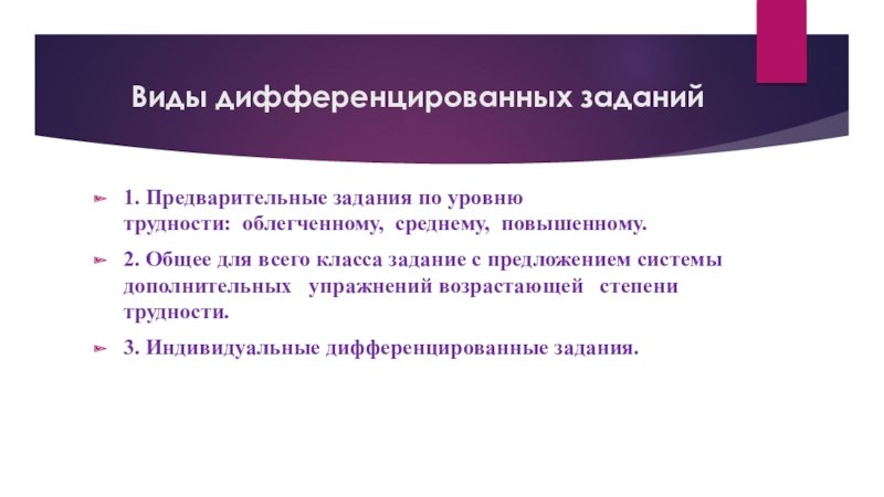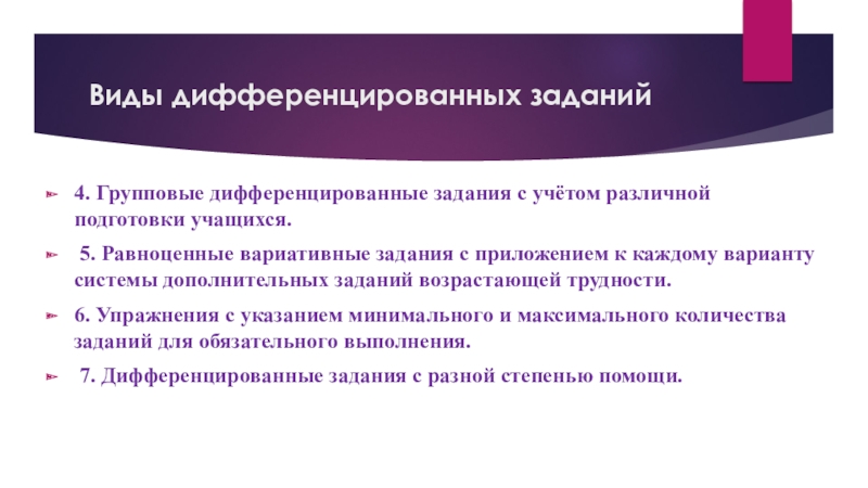 Слайд 24 Виды дифференцированных заданий