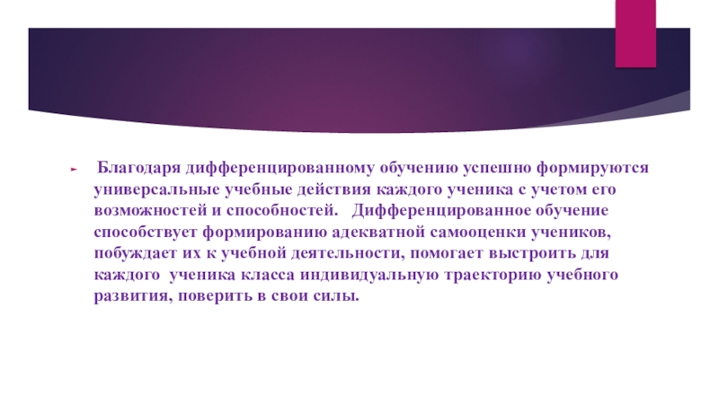 Слайд 55 Благодаря дифференцированному обучению успешно формируются универсальные учебные действия каждого ученика
