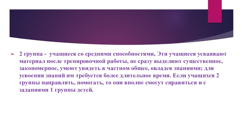 Слайд 222 группа - учащиеся со средними способностями, Эти учащиеся усваивают материал