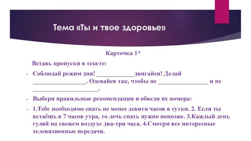 Карточка 2* *
