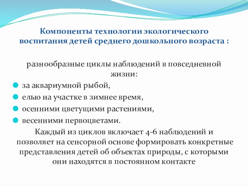 Слайд 9Компоненты технологии экологического воспитания детей среднего дошкольного возраста :