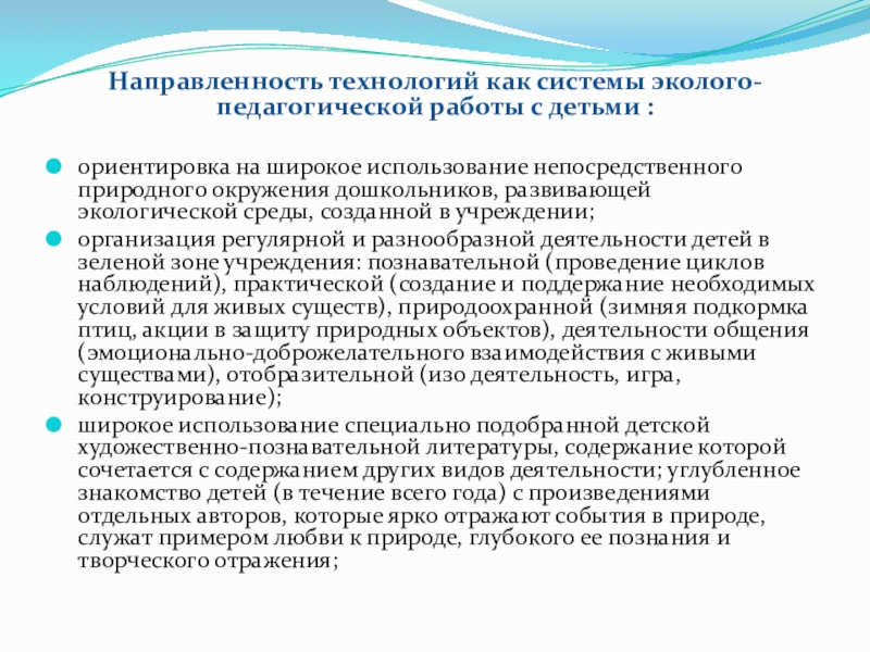 Слайд 3Направленность технологий как системы эколого-педагогической работы с детьми :