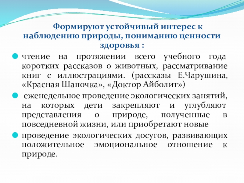 Слайд 11 Формируют устойчивый интерес к наблюдению природы, пониманию ценности здоровья :