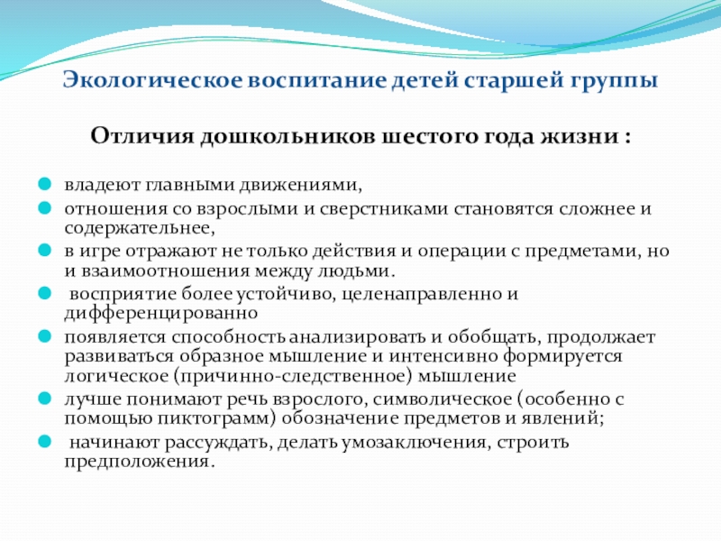 Отличия дошкольников шестого года жизни :