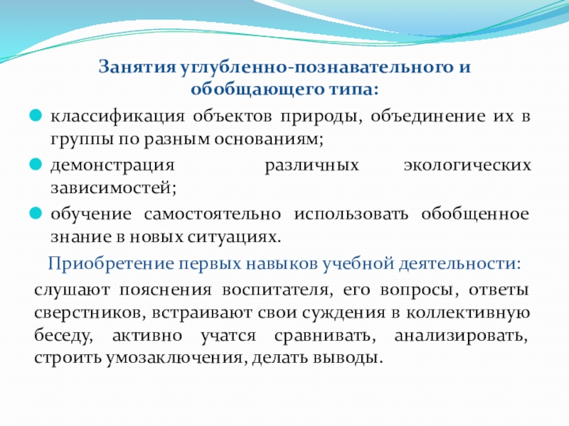 Слайд 17Занятия углубленно-познавательного и обобщающего типа: